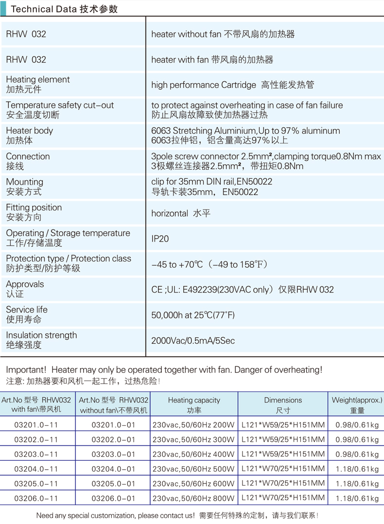 RHW032風(fēng)扇加熱器